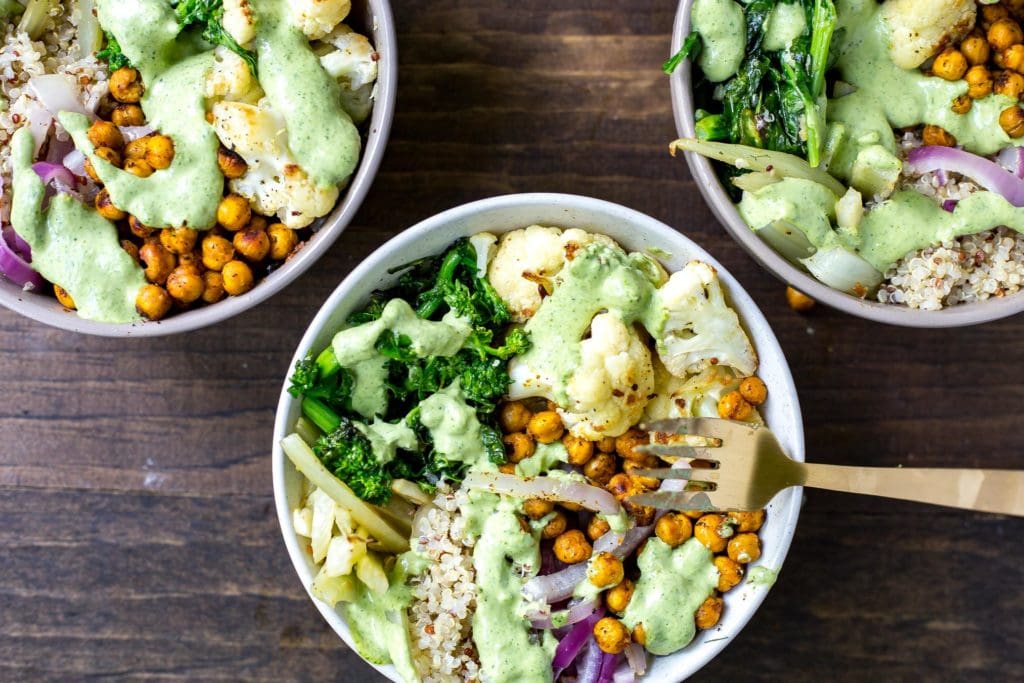 These Buddha Bowls are the perfect way to get a full serving of veggies no matter the time of year! Finished with a delicious cilantro tahini dressing that you will want to put on just about everything, these vegetarian bowls are filled with gluten-free, nutritious ingredients!