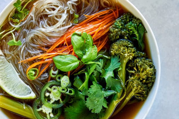 A simple, hearty, healthy vegetarian pho that is sure to warm you on the coldest of winter days. It is packed with flavor and nutrients, and you just what the doctor ordered!