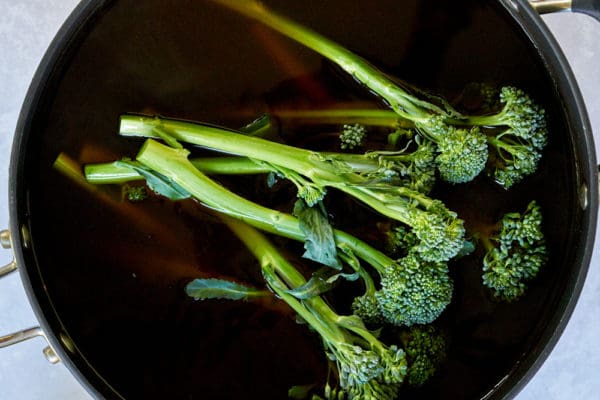 - Add the sweet baby broccoli to the stock and cook until tender, 5-8 minutes.